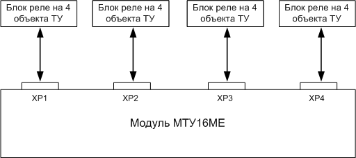 Рисунок 6 — Подключение четырех блоков реле к модулю «МТУ16МЕ»