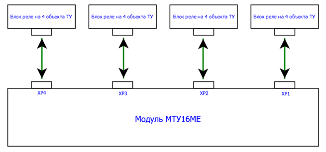 Подключение объектов ТУ с использованием «Блоков реле на 4 объекта ТУ» показано на рисунке 6.