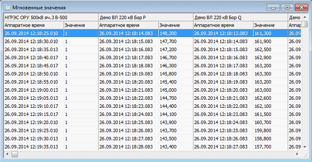 Графики в режиме «Средние» выводятся, как правило, при выбранном масштабе: часы, сутки, месяц. Графики в режиме «Мгновенные» используются при выбранном масштабе: секунды, минуты.