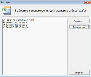Вызывает диалог экспорта телеметрии в «MS Excel»