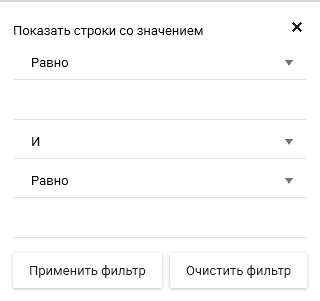 Возможно задать два условия отображаемых значение с использованием операторов "И" , "ИЛИ".