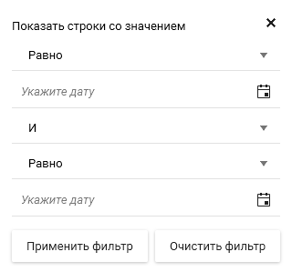 Сброс условий фильтра осуществляется при помощи кнопки "Очистить фильтр".