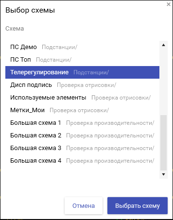 Возможность перехода к каталогу оперативных схем либо к одной указанной схеме.