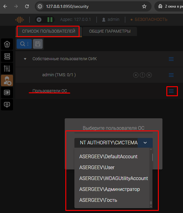 Система безопасности позволяет добавлять/удалять пользователей имеющих доступ к ПО «ОИК Диспетчер НТ».