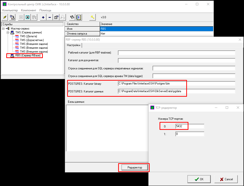9. После успешной установки, произвести восстановление данных из бэкап файлов RBS и TMS –серверов. В настройках сервера RBS указать пути до БД PostgreSQL: