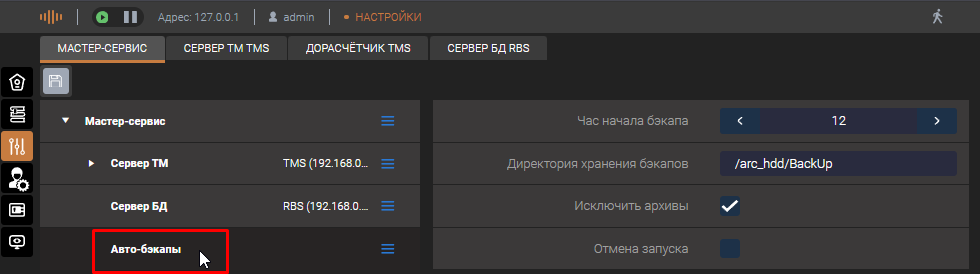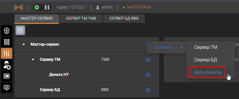 Для настройки необходимо добавить на уровне Master-сервиса компонент "Авто-бэкапы"