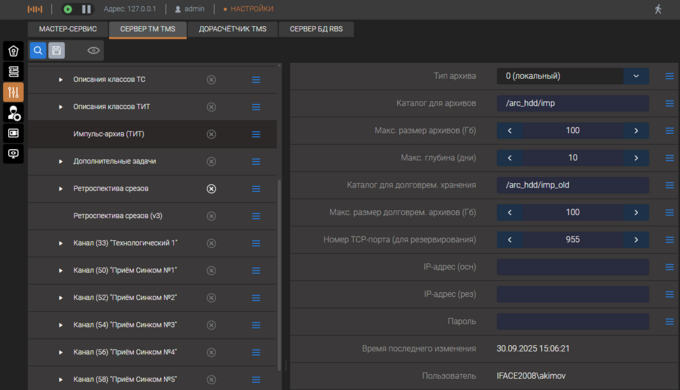 ВНИМАНИЕ! Параметры настройки «Импульс-архива (ТИТ)» следует задавать и корректировать только при остановленной службе Master-сервис, обязательно сохранив их перед запуском сервера.