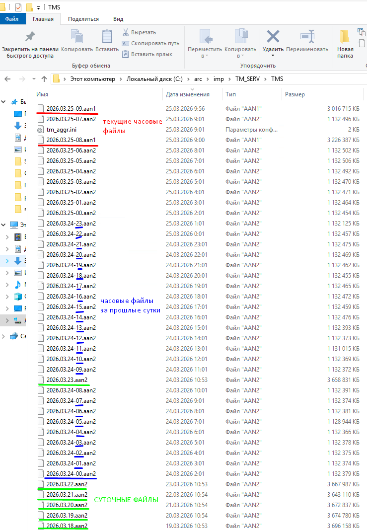 - <текущая дата>-<следующий час>.aan1 (такое возможно при рассинхронизации часов сервера «ОИК Диспетчер НТ» и источника телеметрии);