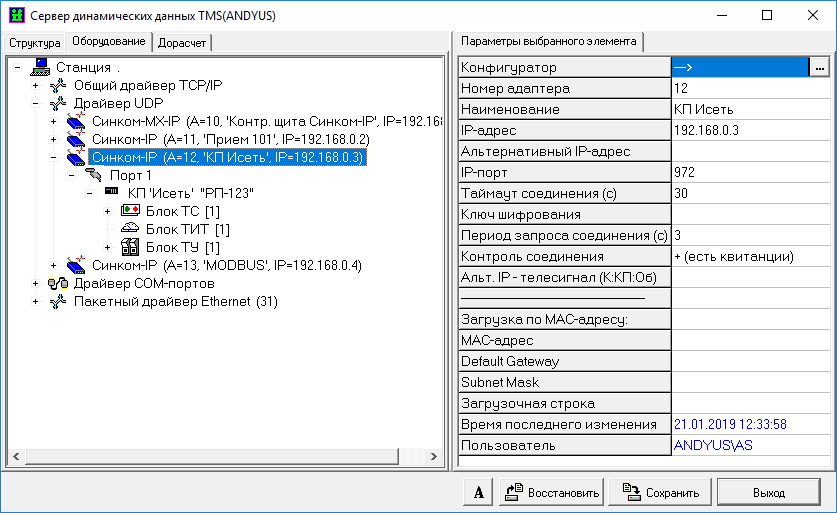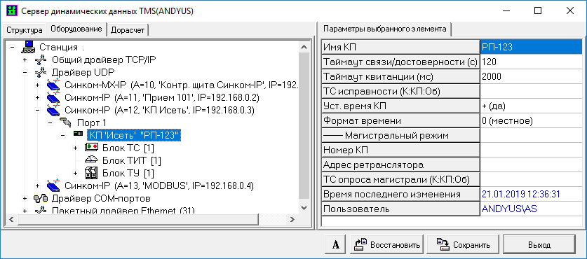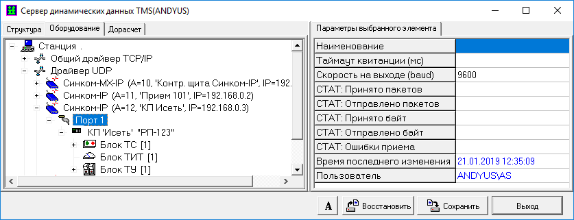 Настройка сервера TMS (протокол КП «Исеть (UDP)»)