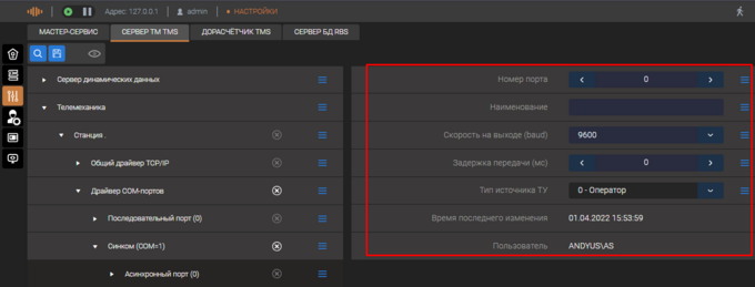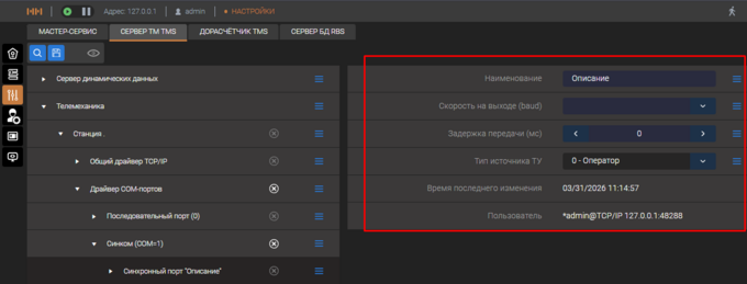 настройка предназначена для организации ключа захвата ТУ и определяет уровень (оператор,ЦУС,ОДУ,РДУ) соединение с которым описано на этом порту.