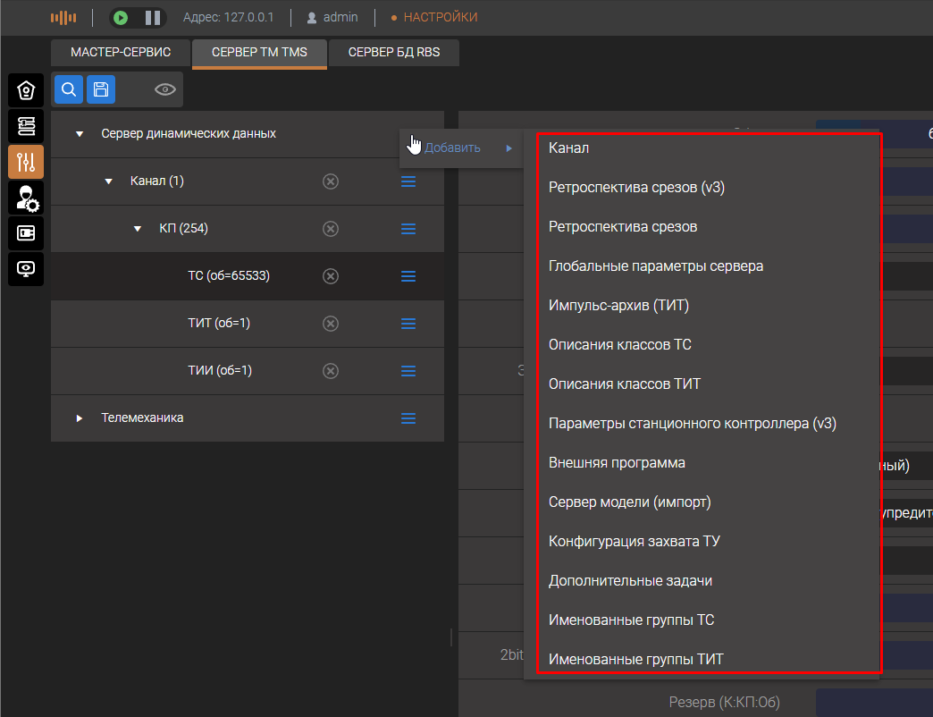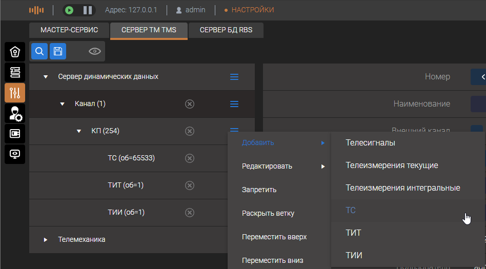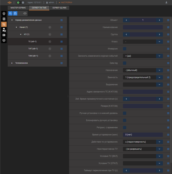 При настройке структуры телемеханического сервера формируются описатели сигналов телеметрии - вводятся наименование и их логические номера. При отображении телеметрии используются имена, а при настройке комплекса логические номера.