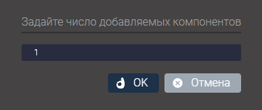 Строка меню для добавления подчиненных компонентов. Перечень доступных компонентов открывается в дополнительном контекстное меню. Позволяет задать число добавляемых компонентов