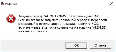 («Остановить») задачи s_setup.exe остановить основной сервер. Программный комплекс должен перейти на работу с резервным сервером.