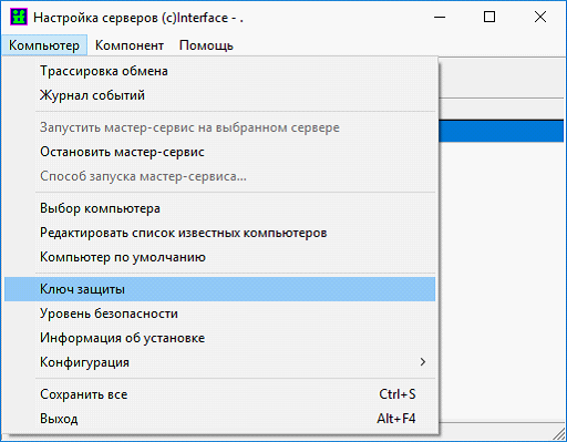 - После успешного подключения выбрать пункт меню «Компьютер» - «Ключ защиты»