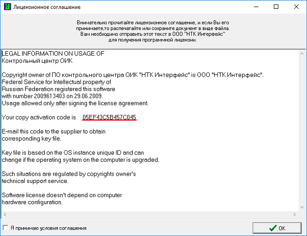 4. Получить код активации программной лицензии. Для этого необходимо: