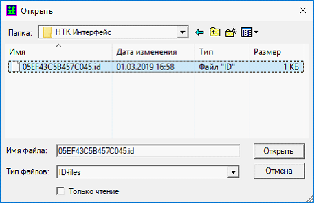 - В появившемся окне выбрать полученный ранее id-файл временной программной лицензии и нажать кнопку «Открыть».