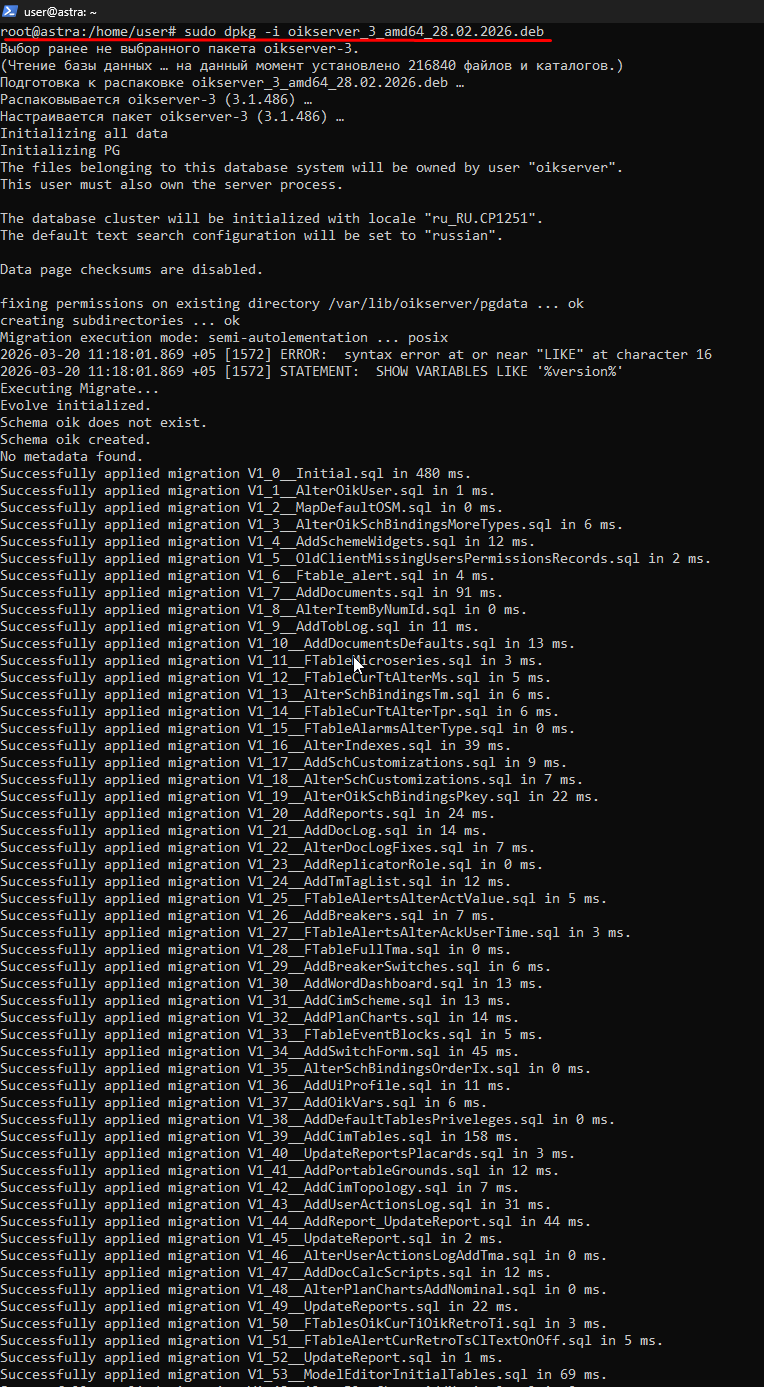 5.2. Установка ПО сервер «ОИК Диспетчер НТ» версии 3.X ОС Linux