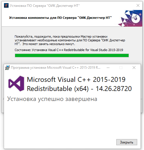 Visual C++ Redistributable for Visual Studio 2015-2019 x64 (версия 14.26.28720 или выше).