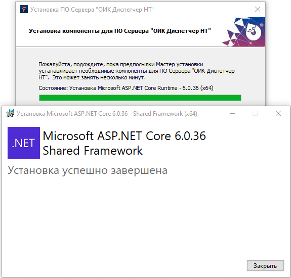 Microsoft ASP.NET CoreRuntime - 6.0.6 x64 (версия 6.0.36 или выше);