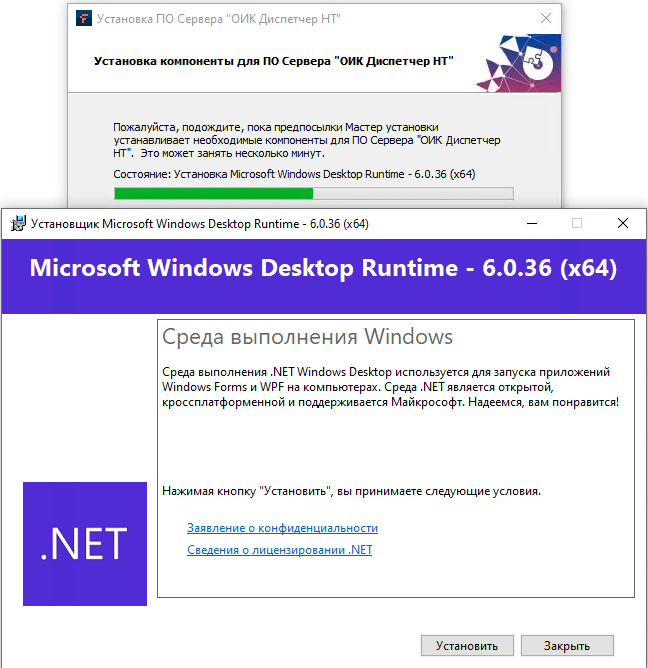 При установке Microsoft Windows Desktop Runtime - 6.0.36 x64 откроется окно установщика, в котором от имени администратора необходимо подтвердить установку компонента.
