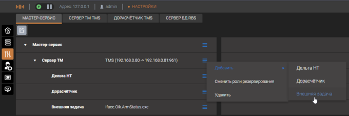 В окне контрольного центра необходимо добавить компонент "Внешняя задача"