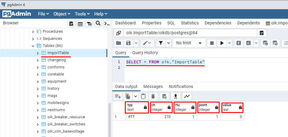 Таким образом для занесения информации в ОИК исполняется запрос SELECT, который должен вернуть таблицу из пяти колонок. Пример