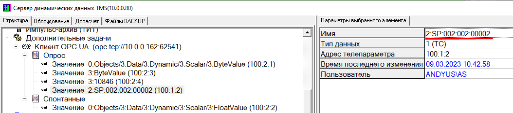 ·     Получение данных может быть настроено как по опросу с определённым периодом, так и по спонтанным спорадическим изменениям данных. В доабвленном параметре значение обязательно необходимо заполнить раздел "Имя" в котором можно записать имя параметра в следующих форматах: