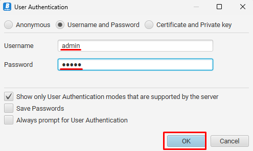 Используя OPC клиент (умеющий производить подключение по заданным логину и паролю) произвести подключение к базе по данным реквизитам (используя логин и пароль доступа к серверу ОИК).