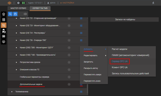 После в появившемся пункте добавить раздел Сервер ОРС UA