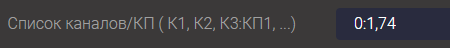 Список каналов - позволяет ограничить количество параметров, которые будут представляться в виде ОРС тегов. Например для доступности в виде ОРС тегов только параметров описанных в канале №0, кп №1 необходимо описать следующую строку: если необходимо предоставить доступ к данным КП №1 описанных в канале №0 и к данным описанным в канале №74 необходимо описать следующую строку: