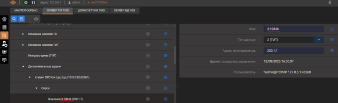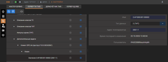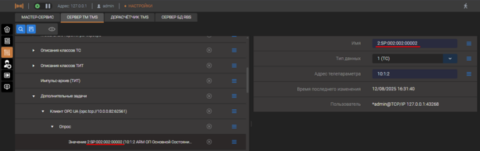 3. Если ОРС - сервер отображает Nodeid параметра в формате ns=namespaceindex;s=name. То в поле имя можно задать описание в формате "namespaceindex:name". Пример: После необходимо выбрать тип данного (телесигнал или телеизмерение) и адрес телепарметра для занесения в структуру ПО сервера "ОИК Диспетчер НТ"