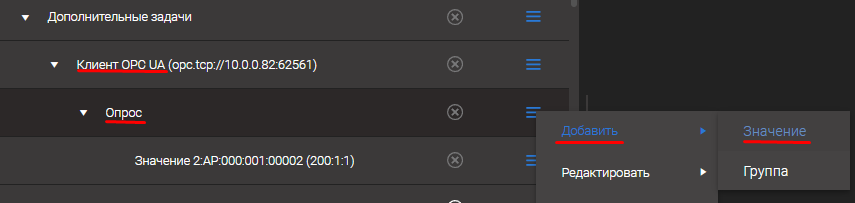 После в появившемся пункте добавить раздел Клиент ОРС UA