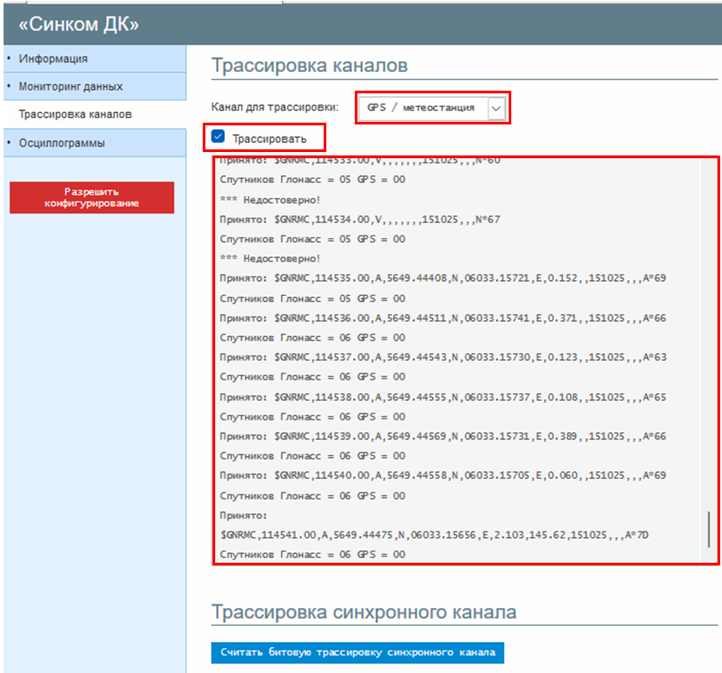 В настройках контроллера, вкладка «Трассировка каналов»:
