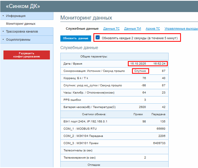 В настройках контроллера, вкладка «Мониторинг данных»: