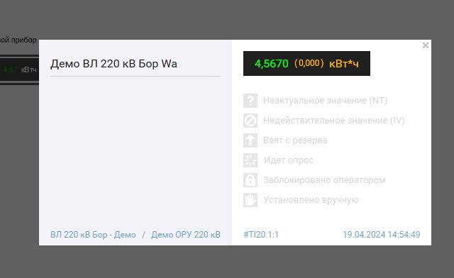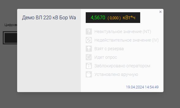 Реализовано отображение интегральных измерений на схемах, а также во всех таблицах: база телеметрии, пользовательские списки и т.п.