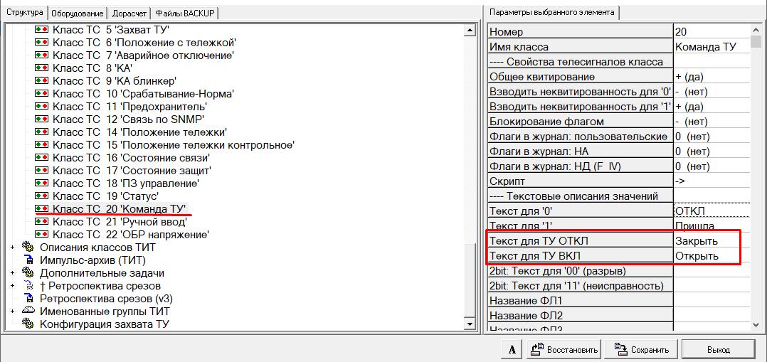 Поддержка настройки класса сигналов для отображения текста команд телеуправления,