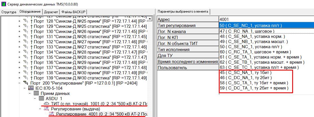 Добавлены новые типы для телерегулирования, которые позволяют выдавать команды телеуправления при описании телерегулирования.