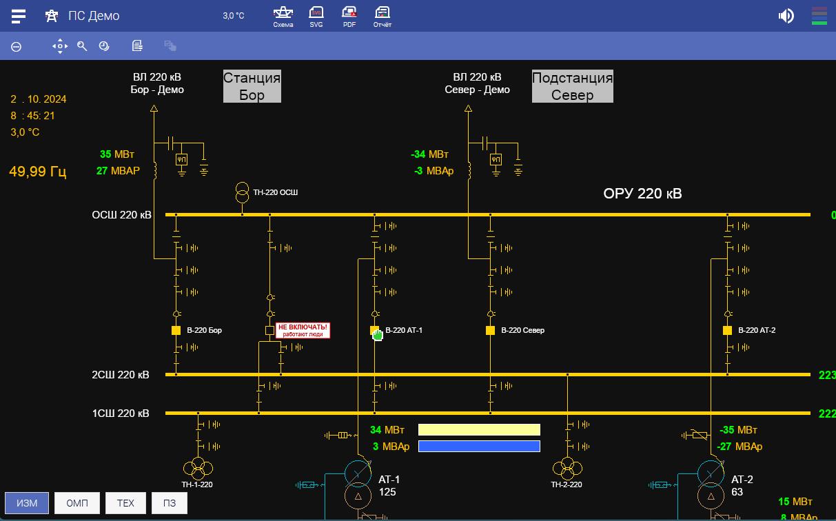Реализована статичная верхняя панель для оперативных схем Модус и SVG-картинок. На панели располагаются кнопки быстрого доступа к большинству функций, масштабирование схемы, поиск и т.п.