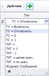 Столбец "Тип" позволяет выбрать необходимый тип управляющего воздействия:
