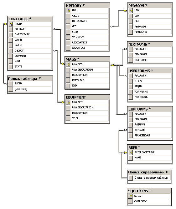 На Рис. Д.1 представлена схема структуры базы данных, состоящей из минимального набора таблиц.
