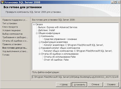 Запустить файл SQLManagementStudio_x86_RUS.exe и выполнить следующие действия: