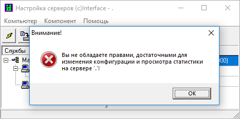 После смены пароля появится окно предупреждения о недостаточном уровне прав для изменения конфигурации и просмотра статистики на сервере, показано на рисунке: