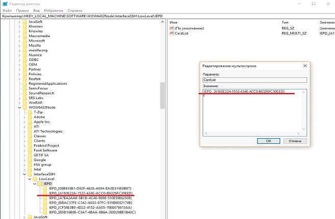 Компьютер\HKEY_LOCAL_MACHINE\SOFTWARE\WOW6432Node\InterfaceSSH\LowLevel\IEPD, либо при её отсутствии Компьютер\HKEY_LOCAL_MACHINE\SOFTWARE\WOW6432Node\InterfaceSSH\LowLevel.