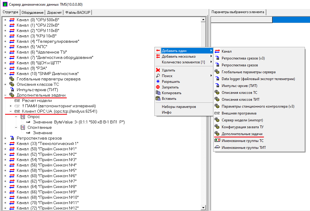В структуре ПО сервера «ОИК Диспетчер НТ» добавить пункт дополнительные задачи – Клиент OPC UA (описывать внешнюю задачу не требуется)