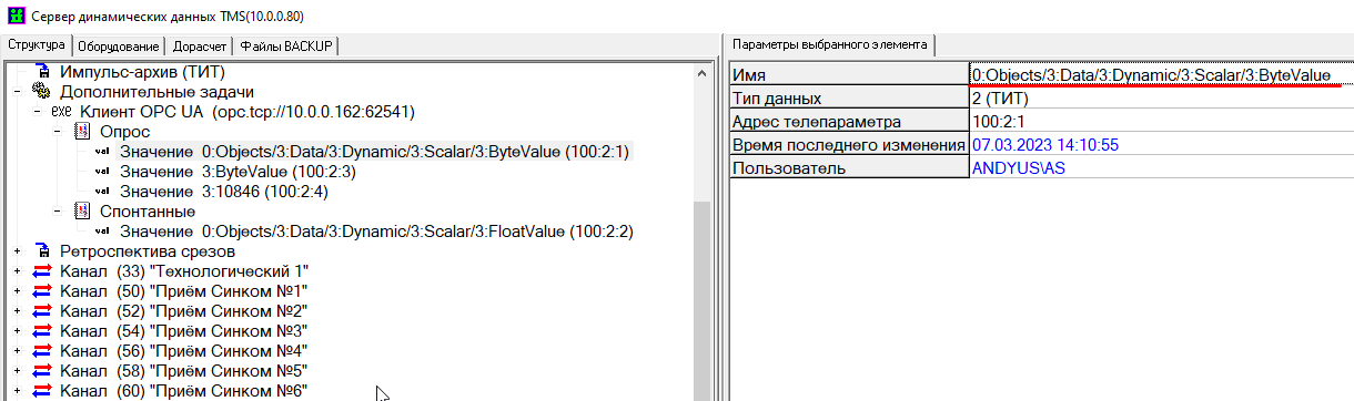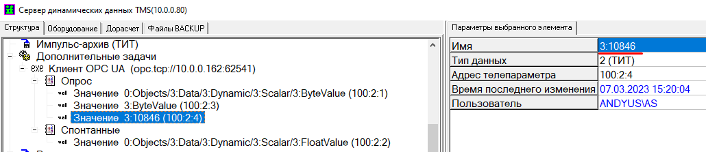 · Получение данных может быть настроено как по опросу с определённым периодом, так и по спонтанным спорадическим изменениям данных. В доабвленном параметре значение обязательно необходимо заполнить раздел "Имя" в котором можно записать имя параметра в следующих форматах: