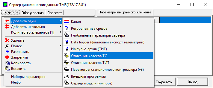 Для добавления описания классов ТС в структуру сервера динамических данных необходимо: