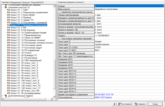 Классы ТС служит для настройки текстовых констант, характеризующих множественное состояние объекта телесигнализации с использованием дополнительных флагов состояния ТС. В частности, понятие классов необходимо для описания объектов ТС в редакторе «Модус».