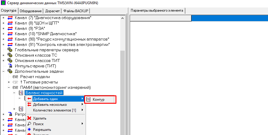 4. После настройки параметра ПАМИ нажать на него ПКМ и добавить алгоритм расчета Баланса мощностей.