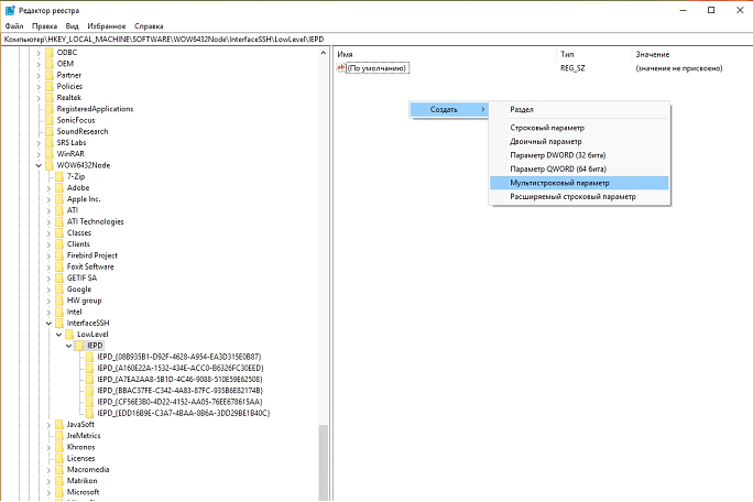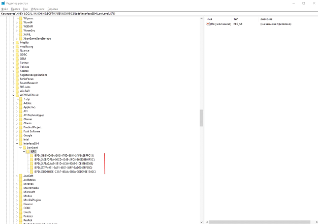 Компьютер\HKEY_LOCAL_MACHINE\SOFTWARE\WOW6432Node\InterfaceSSH\LowLevel\IEPD, либо при её отсутствии Компьютер\HKEY_LOCAL_MACHINE\SOFTWARE\WOW6432Node\InterfaceSSH\LowLevel.