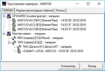 Программа «Трассировка серверов» («Журнал регистрации событий»)